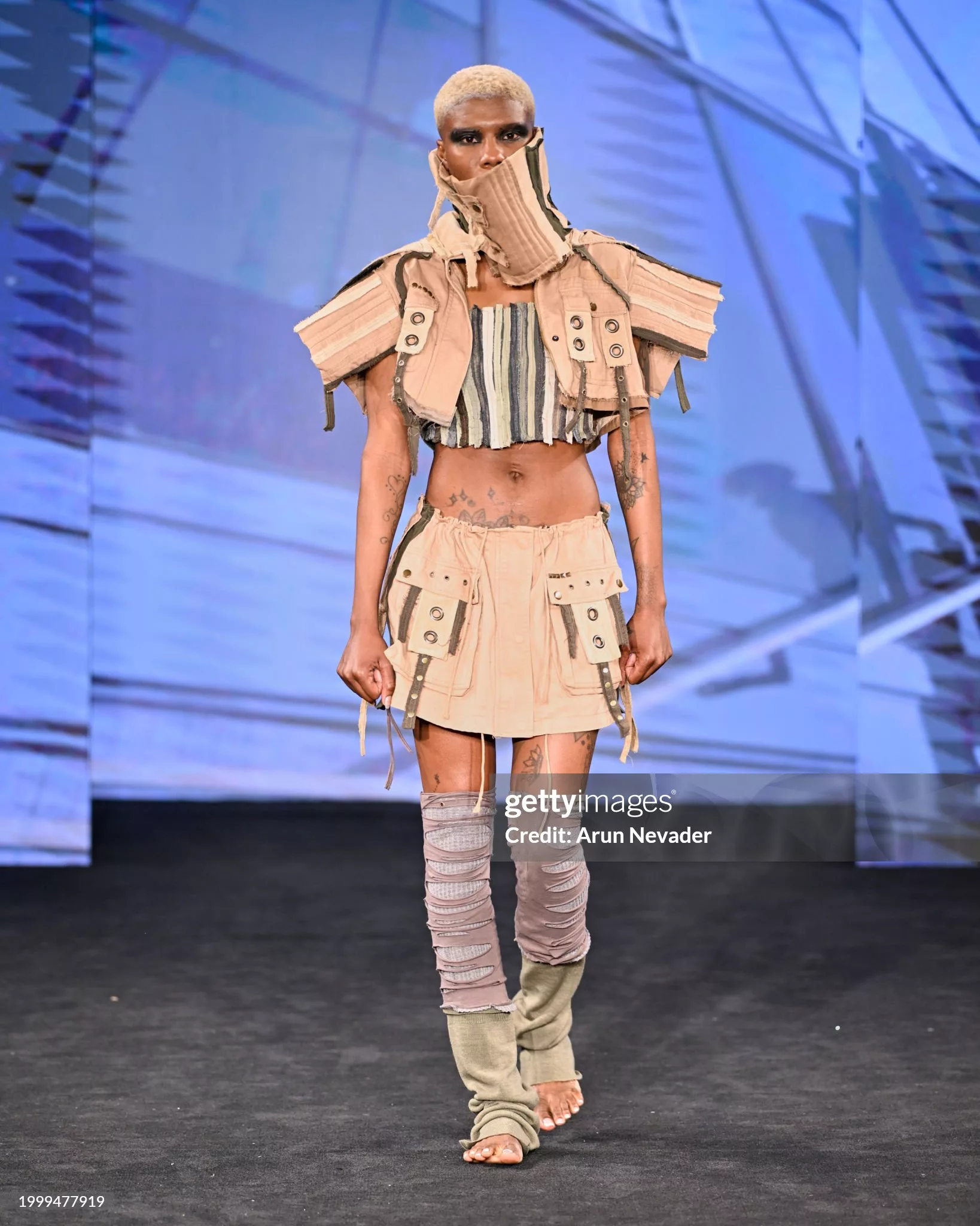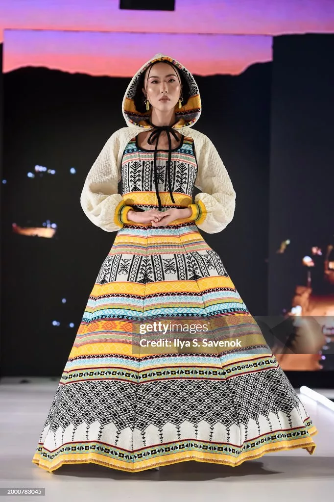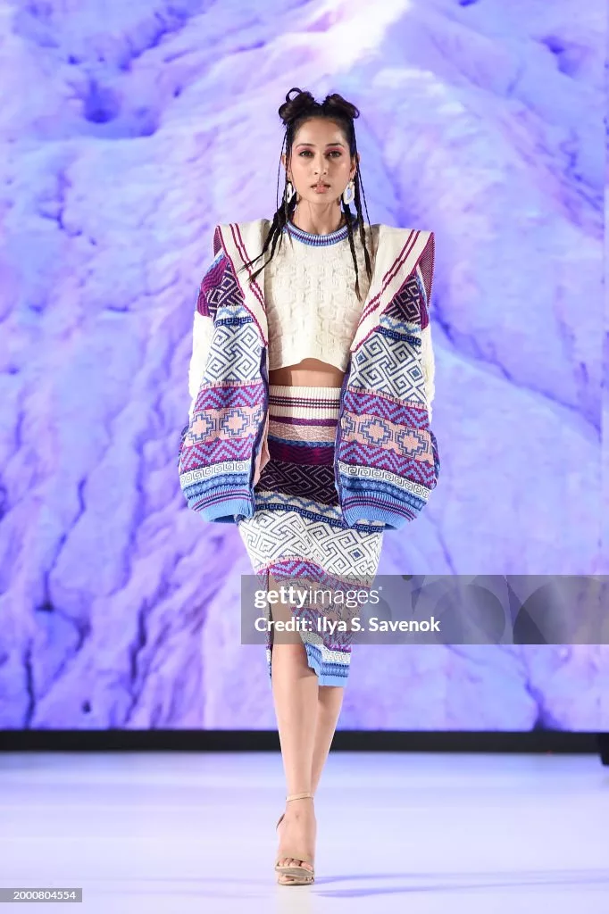 - NEW YORK, NEW YORK – FEBRUARY 10: A model walks the runway for Microteje during Runway 7 New York Fashion Week Fall/Winter 2024 at Sony Hall on February 10, 2024 in New York City. (Photo by Ilya S. Savenok/Getty Images for Runway 7)