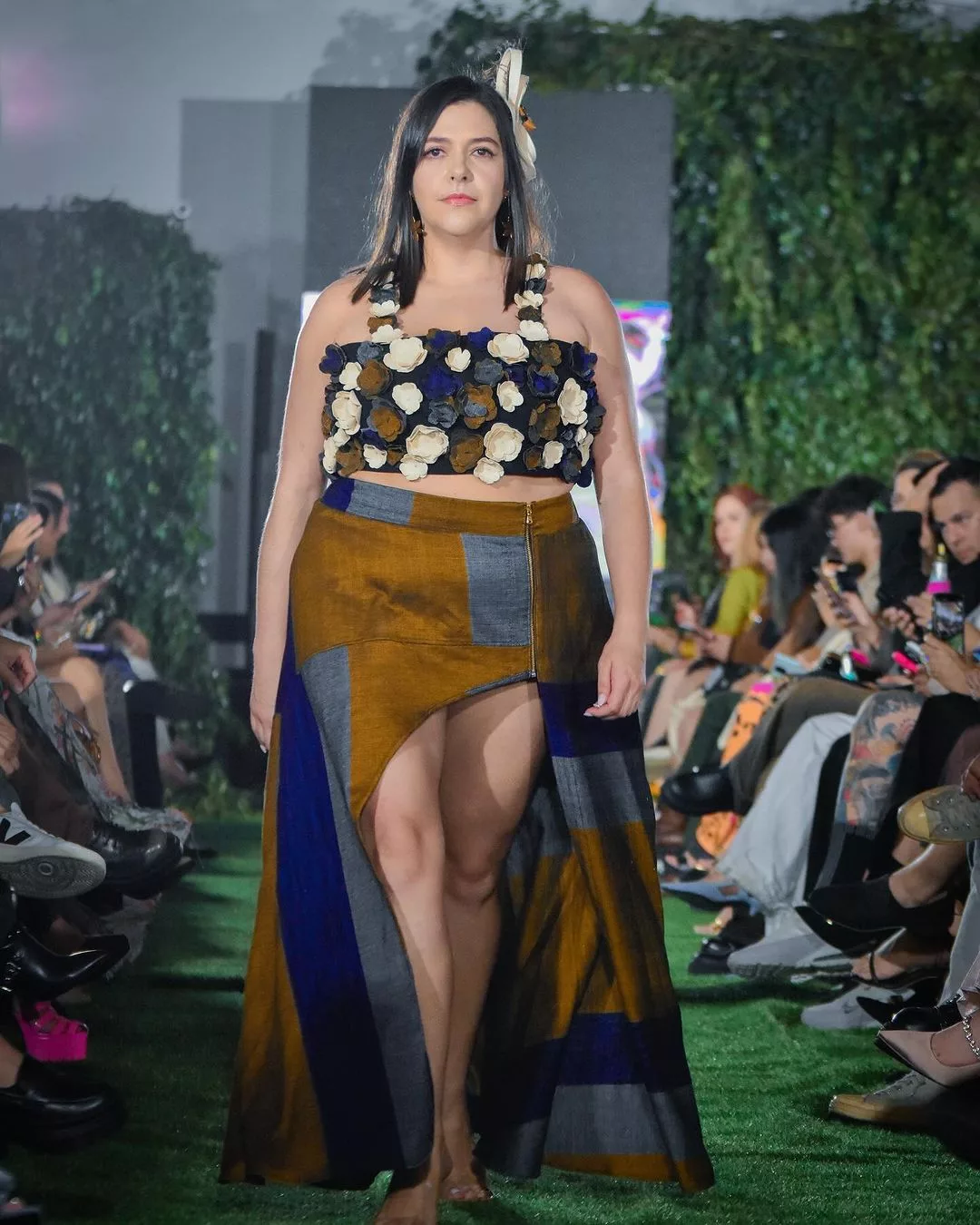 Las flores fueron las protagonistas de la pasarela. Hechas de retazos de telas y en colores opacos, aparecieron como apliqués de distintos tops y vestidos.