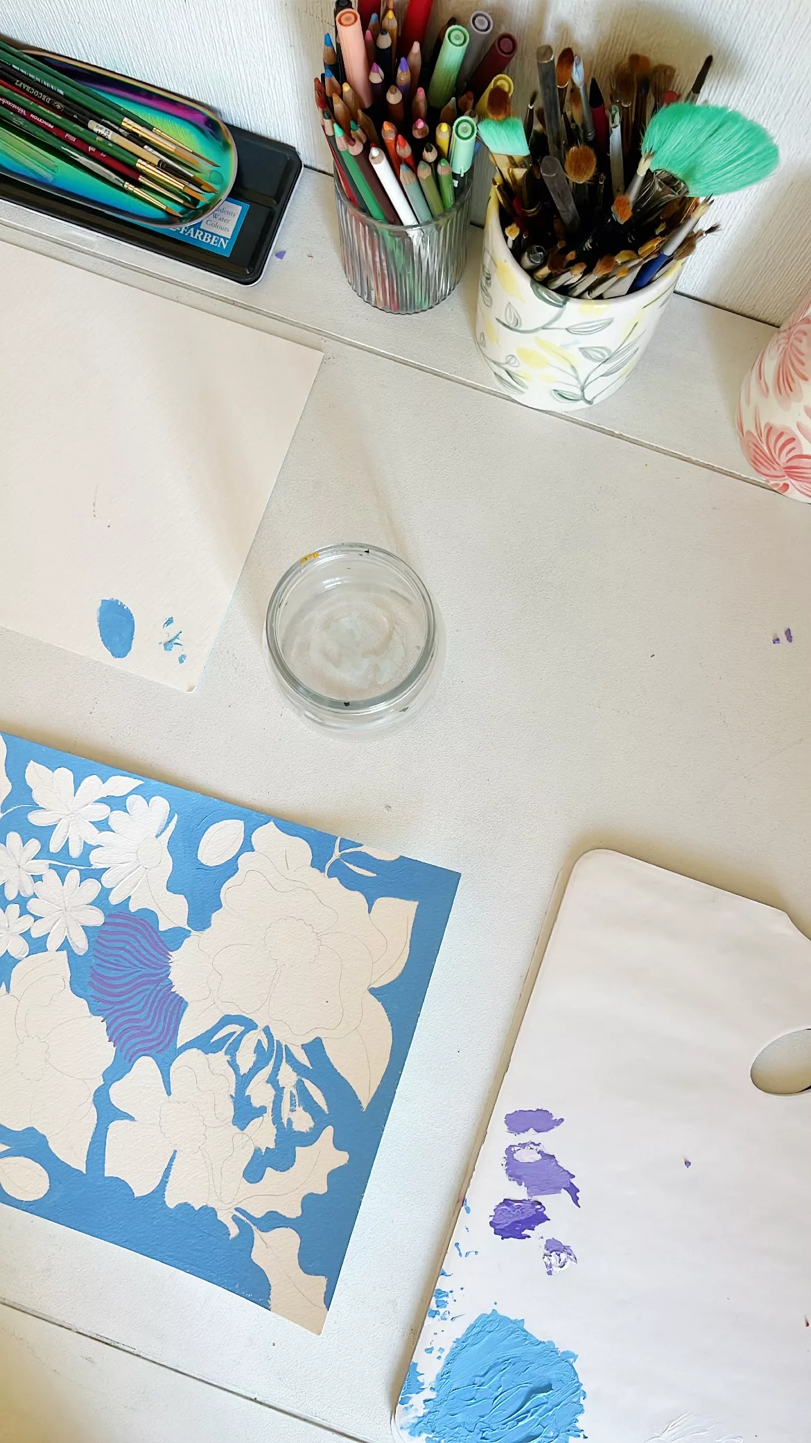 “Este proceso de creación me llevó un poco más de un mes. Fue un desafío ya que hace mucho tiempo no pintaba a mano, pero fue un proceso muy bonito. Esto se conecta muchísimo con la producción lenta. Esa lentitud y ese pausado se ve en cada estola”.